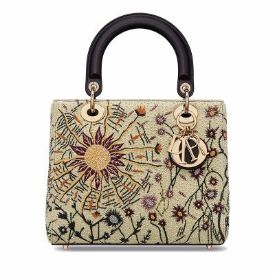 首页 > > 【包邮包税】DIOR/迪奥 Lady Dior系列 淡黄色小牛皮拼接彩绣中号戴妃包手提包 M0565OURV_M886