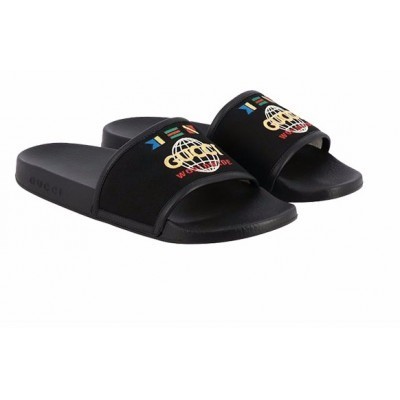GUCCI/古驰男士 黑色饰有尼龙织带和旗帜刺绣平底凉拖鞋599143 9PYX0 1000